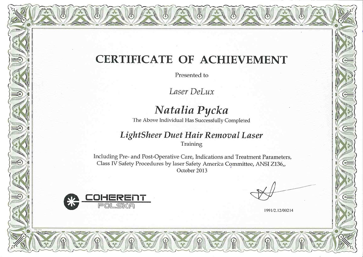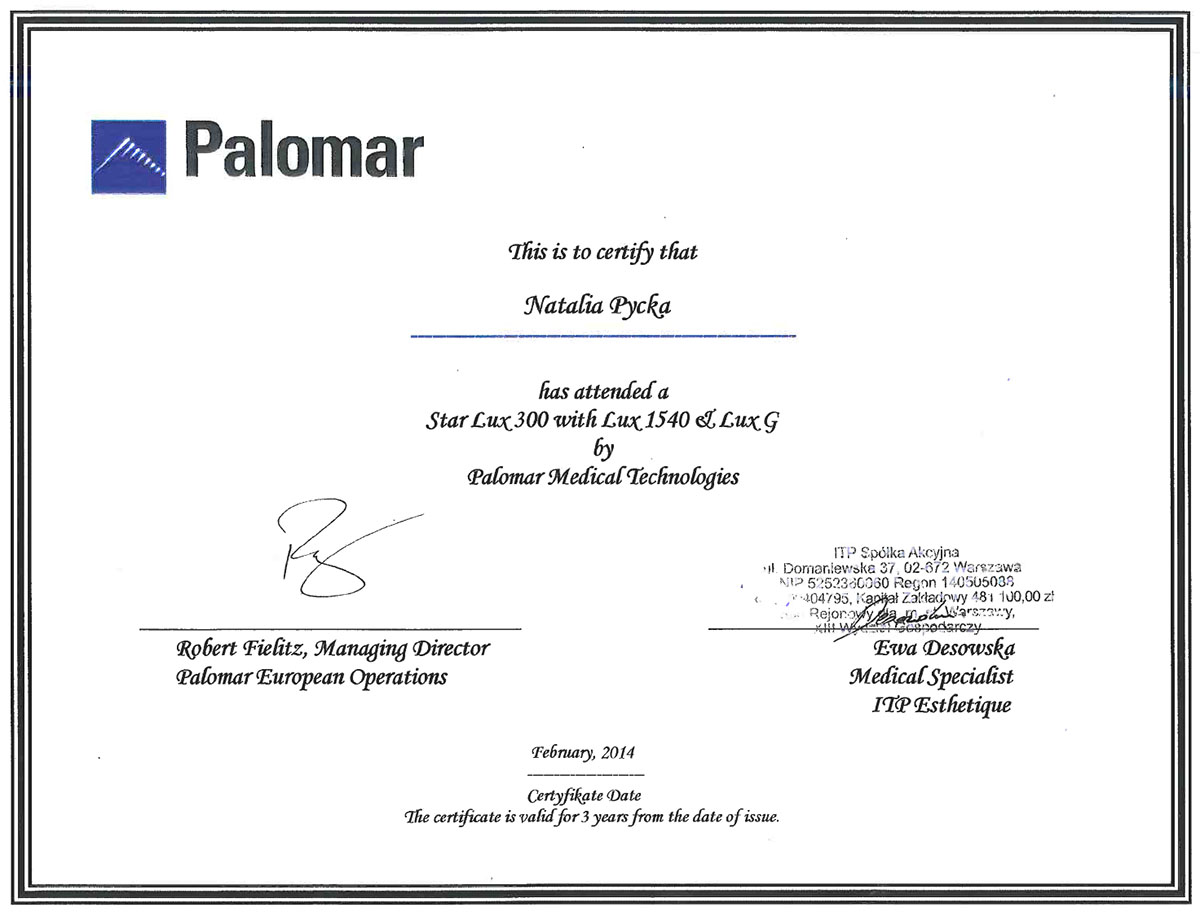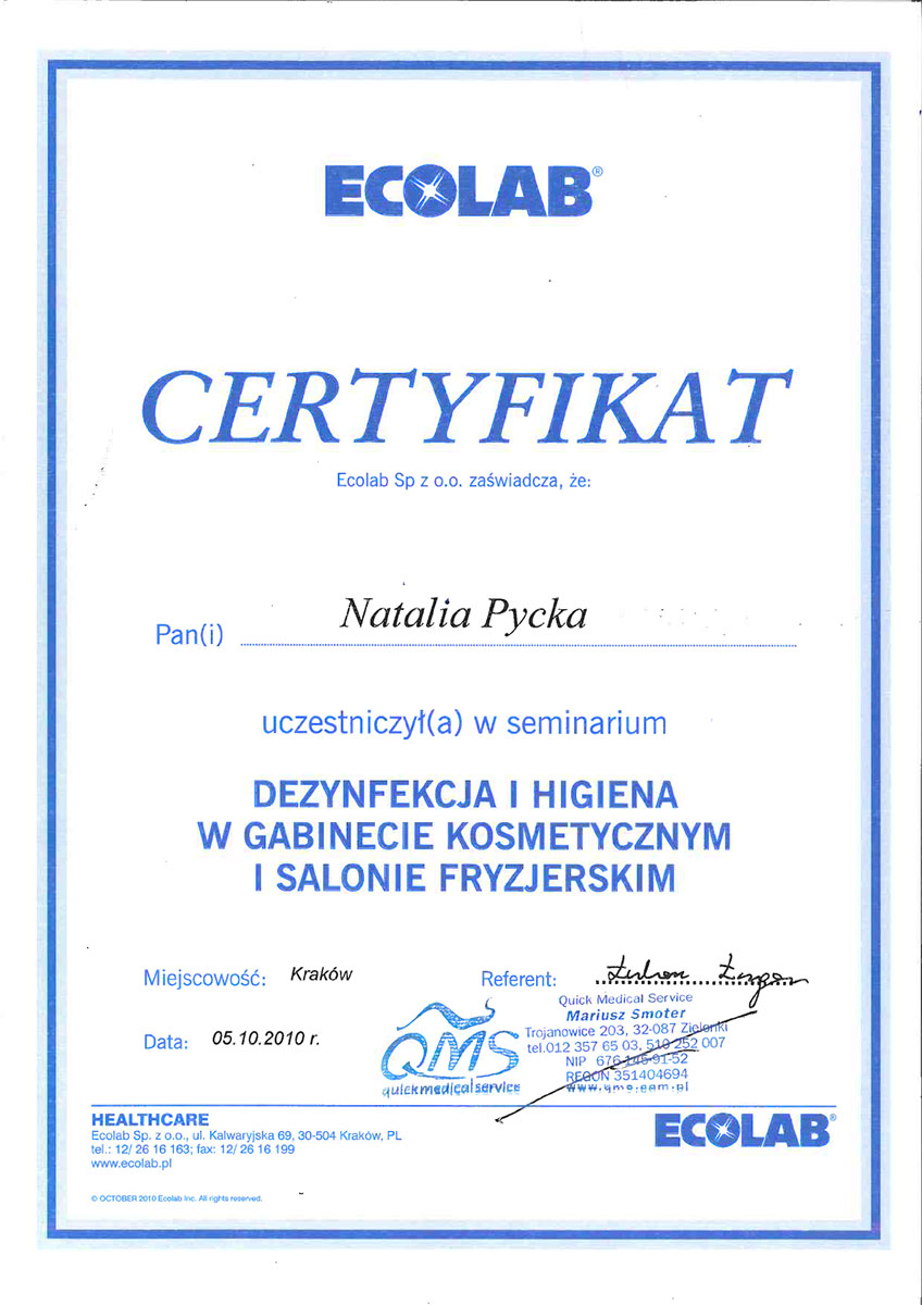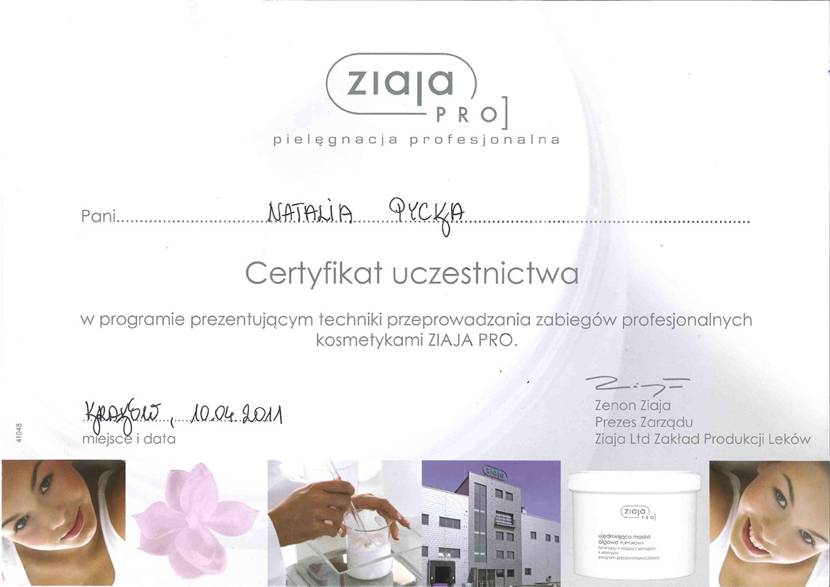 Ukończyła studia wyższe na kierunku – kosmetologia. Od ponad 10 lat wykonuje zabiegii depilacji laserowej. Specjalizuje się również w rozwiązywaniu problemów skóry takich jak trądzik czy rumień. Zeszczególną dbałością podchodzi do każdego wykonywanego zabiegu. W pracy najważniejsze są dla niej serdeczny kontakt z ludźmi i indywidulne podejście do każdego problemu.